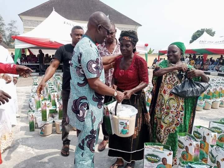 Women and widows across Isoko Nation offering prayers for Comrade (Chief) Ovuozourie Samuel Macaulay and his family.One of the beneficiaries during the 2023 Macaulay Foundation Christmas Celebration with widows.One of the traditional ruler presenting packages to one of the widows.One of the invited Clergy presenting packages to one of the beneficiaries.